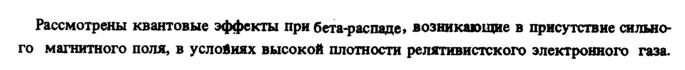 Рассмотрены квантовые эффекты при бета-распаде» возникающие в присутствие сильного магнитного поля, в условиях высокой плотности релятивистского электронного газа.