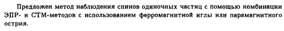 Предложен метод наблюдения спинов одиночных частиц с помощью комбинации ЭПРи СТМ-методов с использованием ферромагнитной иглы или парамагнитного острия.