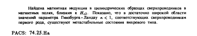 Найдена магнитная индукция в цилиндрических образцах сверхпроводников в магнитных полях, близких к Η л. Показано, что в достаточно широкой области значений параметра Гинзбурга-Ландау к < 1, соответствующих сверхпроводникам первого рода, существуют метастабильные состояния вихревого типа. Ρ ACS: 74.25.На