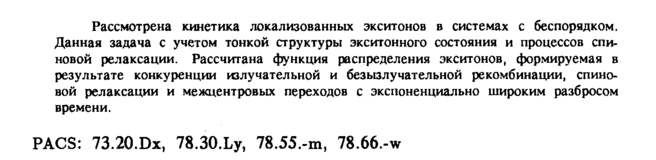 Рассмотрена кинетика локализованных экситонов в системах с беспорядком. Данная задача с учетом тонкой структуры экситонного состояния и процессов спиновой релаксации. Рассчитана функция распределения экситонов, формируемая в результате конкуренции излучательной и безызлучательной рекомбинации, спиновой релаксации и межцентровых переходов с экспоненциально широким разбросом времени. PACS: 73.20.Dx, 78.30.Ly, 78.55.-m, 78.66.-w