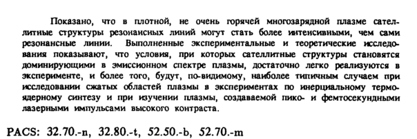 Показано, что в плотной, не очень горячей многозарядной плазме сател-литные структуры резонансных линий могут стать более интенсивными, чем сами резонансные линии. Выполненные экспериментальные и теоретические исследования показывают, что условия, при которых сателлитные структуры становятся доминирующими в эмиссионном спектре плазмы, достаточно легко реализуются в эксперименте, и более того, будут, по-видимому, наиболее типичным случаем при исследовании сжатых областей плазмы в экспериментах по инерциальному термоядерному синтезу и при изучении плазмы, создаваемой пикои фемтосекундными лазерными импульсами высокого контраста. PACS: 32.70.-n, 32.80.-t, 52.50.-b, 52.70.-m