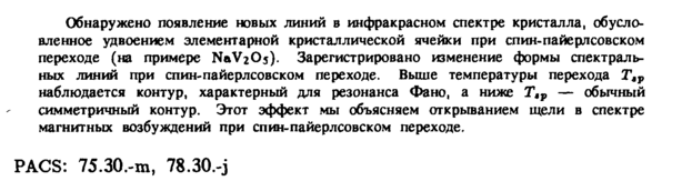 Появление новых линий и изменение формы линий в ИК спектре монокристалла NaV2O5 при спин-пайерлсовском переходе