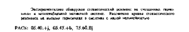 Экспериментально обнаружен стохастический резонанс на смешанных гармониках в моностабильной магнитной системе. Рассчитана кривая стохастического резонанса на высших гармониках в системах с малой нелинейностью. PACS: 05.40.+j, 05.45,+Ъ, 75.60.Ej
