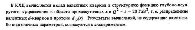 В КХД вычисляется вклад валентных кварков в структурную функцию глубоко-неуп- 2 2 ругого ν р-рассеяния в области промежуточных χ и Q =5—20 ГэВ , т. е. распределение валентных с/-кварков в протоне d у(х) Результаты вычислений, не содержащие каких-либо подгоночных параметров, согласуются с экспериментом.