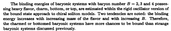 The binding energies of baryonic systems with baryon number В — 2,3 and 4 possessing heavy flavor, charm, bottom, or top, are estimated within the rigid oscillator version of the bound state approach to chiral soliton models. Two tendencies are noted; the binding energy increases with increasing mass of the flavor and with increasing B. Therefore, the charmed or bottomed baryonic systems have more chances to be bound than strange baryonic systems discussed previously.