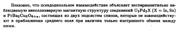 Показано, что псевдодипольное взаимодействие объясняет экспериментально наблюдаемую неколлинеарную магнитную структуру соединений U2PCI2X (X = In, Sn) и РгВагСизОв+а, состоящих из двух подсистем спинов, которые не взаимодействуют в приближении среднего поля при наличии только изотропного обмена между ними.
