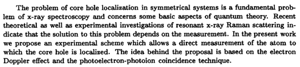 The problem of core hole localization in symmetrical systems is a fundamental problem of x-ray spectroscopy and concerns some basic aspects of quantum theory. Recent theoretical as well as experimental investigations of resonant x-ray Raman scattering indicate that the solution to this problem depends on the measurement. In the present work we propose an experimental scheme which allows a direct measurement of the atom to which the core hole is localized. The idea behind the proposal is based on the electron Doppler effect and the photoelectron-photoion coincidence technique.