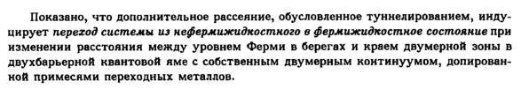 Показано, что дополнительное рассеяние, обусловленное туннелированием, индуцирует переход системы из нефермижидкостного в фермижидкостное состояние при изменении расстояния между уровнем Ферми в берегах и краем двумерной зоны в двухбарьерной квантовой яме с собственным двумерным континуумом, допирован-ной примесями переходных металлов.
