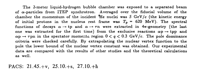 The 2-meter liquid-hydrogen bubble chamber was exposed to a separated beam of α-particles from ITEP synchrotron. Averaged over the fiducial volume of the chamber the momentum of the incident ^He nuclei was 5 GeV/c (the kinetic energy of initial protons in the nucleus rest frame was Tp = 620 MeV). The spectral functions of decays a —» tp and a —> τη were extracted in 4>r-geometry (the last one was extracted for the first time) from the exclusive reactions ap —> tpp and ap —f rpn in the spectator momenta region 0 < q < 0.3 GeV/c. The pole dominance criteria were checked carefully. By extrapolating the nuclear vertex function to the pole the lower bound of the nuclear vertex constant was obtained. Our experimental data are compared with the results of other studies and the theoretical calculations as well. PACS: 21.45.+V, 25.I0.-fs, 27.10.+h