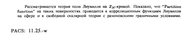 Рассматривается теория поля Лиувилля на Zjv-кривой. Показано, что "Partition function" на таких поверхностях приводится к корреляционным функциям Лиувилля на сфере и к свободной скалярной теории с рамоновскими граничными условиями. PACS: ll.25.-w
