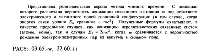 Представлена релятивистская версия метода мнимого времени. С помощью которого рассчитана вероятность ионизации связанного состояния w под действием электрического и магнитного полей различной конфигурации (в том случае, когда энергия связи уровня Еь сравнима с тс2). Полученные формулы охватывают, в качестве предельньгх случаев, как ионизацию нерелятивистских связанных систем (атомы, ионы), так и случай Еь 2тс2, когда w сравнивается с вероятностью рождения электрон-позитронных пар из вакуума в сильном поле. PACS: 03.65.-w, 32.60.-fi