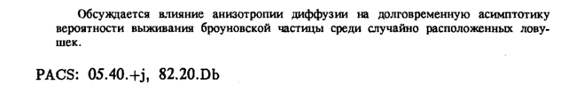 Обсуждается влияние анизотропии диффузии на долговременную асимптотику вероятности выживания броуновской частицы среди случайно расположенных ловушек. PACS: 05.40.+j, 82.20.Db