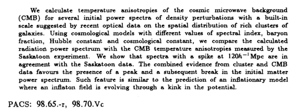 We calculate temperature anisotropics of the cosmic microwave background (CMB) for several initial power spectra of density perturbations with a built-in scale suggested by recent optical data on the spatial distribution of rich clusters of galaxies. Using cosmological models with different values of spectral index, baryon fraction, Hubble constant and cosmological constant, we compare the calculated radiation power spectrum with the CMB temperature anisotropics measured by the Saskatoon experiment. We show that spectra with a spike at 120ft-' Mpc are in agreement with the Saskatoon data. The combined evidence from cluster and CMB data favours the presence of a peak and a subsequent break in the initial matter power spectrum. Such feature is similar to the prediction of an inflationary model where an inflaton field is evolving through a kink in the potential. PACS: 98.65.-r, 98.70.Vc