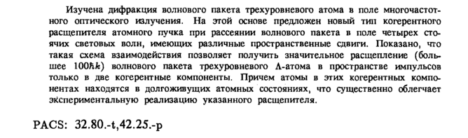 Изучена дифракция волнового пакета трехуровневого атома в поле многочастотного оптического излучения. На этой основе предложен новый тип когерентного расщепителя атомного пучка при рассеянии волнового пакета в поле четырех стоячих световых волн, имеющих различные пространственные сдвиги. Показано, что такая схема взаимодействия позволяет получить значительное расщепление (большее lOOftfc) волнового пакета трехуровневого Л-атома в пространстве импульсов только в две когерентные компоненты. Причем атомы в этих когерентных компонентах находятся в долгоживущих атомных состояниях, что существенно облегчает экспериментальную реализацию указанного расщепителя. PACS: 32.80.-t.42.25.-p