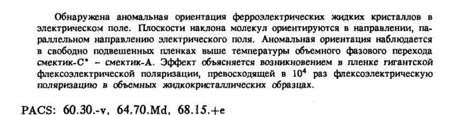 Аномальная ориентация пленок ферроэлектрического жидкого кристалла в электрическом поле