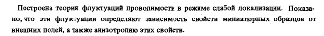 Построена теория флуктуации проводимости в режиме слабой локализации. Показано, что эти флуктуации определяют зависимость свойств миниатюрных образцов от внешних полей, а также анизотропию этих свойств.