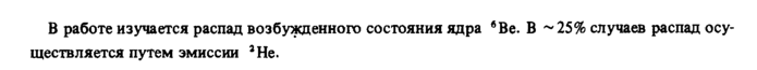 В работе изучается распад возбужденного состояния ядра бВе. В ~25% случаев распад осуществляется путем эмиссии 3Не.