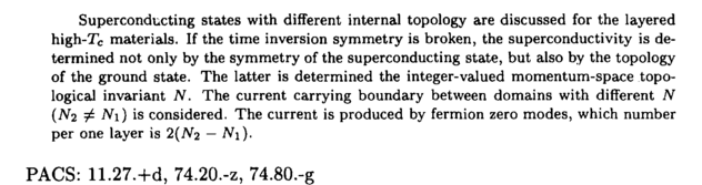 Superconducting states with different internal topology are discussed for the layered high-Tc materials. If the time inversion symmetry is broken, the superconductivity is determined not only by the symmetry of the superconducting state, but also by the topology of the ground state. The latter is determined the integer-valued momentum-space topological invariant TV. The current carrying boundary between domains with different iV (jV2 φ N\) is considered. The current is produced by fermion zero modes, which number per one layer is 2(N2 N\). PACS: 11.27.+d, 74.20.-z, 74.80.-g