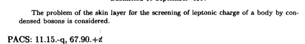 The problem of the skin layer for the screening of leptonic charge of a body by condensed bosons is considered.