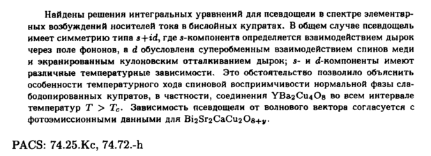 Найдены решения интегральных уравнений для псевдощели в спектре элементарных возбуждений носителей тока в бислойных купратах. В общем случае псевдощель имеет симметрию типа s+id, где s-компонента определяется взаимодействием дырок через поле фононов, a d обусловлена суперобменным взаимодействием спинов меди и экранированным кулоновским отталкиванием дырок; sи ci-компоненты имеют различные температурные зависимости. Это обстоятельство позволило объяснить особенности температурного хода спиновой восприимчивости нормальной фазы сла-бодопированных купратов, в частности, соединения УВагСщОв во всем интервале температур Τ > Тс. Зависимость псевдощели от волнового вектора согласуется с фотоэмиссионными данными для Bi2Sr2CaCu20e+». PACS: 74.25.Kc, 74.72.-h