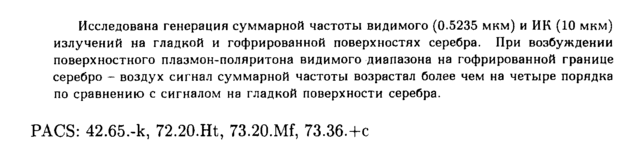 Исследована генерация суммарной частоты видимого (0.5235 мкм) и ИК (10 мкм) излучений на гладкой и гофрированной поверхностях серебра. При возбуждении поверхностного плазмон-поляритона видимого диапазона на гофрированной границе серебро воздух сигнал суммарной частоты возрастал более чем на четыре порядка по сравнению с сигналом на гладкой поверхности серебра. PACS: 42.65.-k, 72.20.Ht, 73.20.Mf, 73.36.+С