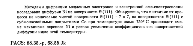 Методами дифракции медленных электронов и электронной оже-спектроскопии исследована диффузия № на поверхности Si(lll). Обнаружено, что в отличие от процесса на изначально чистой поверхности Si(lll) 7 χ 7, на поверхностях Si(lll) с субмонослойными покрытиями Со при температуре около 750° С происходят смена механизма переноса Ni и резкое увеличение коэффициентов его поверхностной диффузии ниже этой температуры. PACS: 68.35.-p, 68.55.Jk