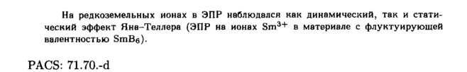 На редкоземельных ионах в ЭПР наблюдался как динамический, так и статический эффект Яна-Теллера (ЭПР на ионах Sm3+ в материале с флуктуирующей валентностью ЭтВб). Ρ ACS: 71.70.-d