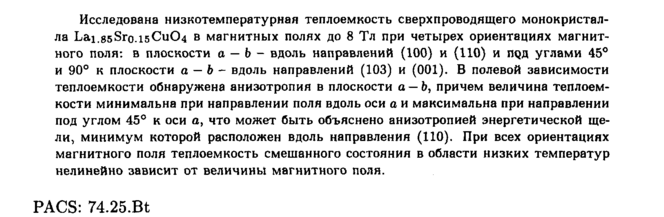 Зависимость теплоемкости сверхпроводящего монокристалла La1.85Sr0.15CuO4 от напавления магнитного поля в плоскости a - b