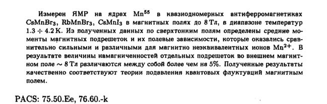 Исследование подавления квантовых флуктуаций магнитным полем в квазиодномерных антиферромагнетиках методом ЯМР на Mn55