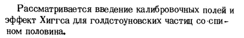 Рассматривается введение калибровочных полей и эффект Хиггса для голдстоуновских частиц со-спи ном половина.