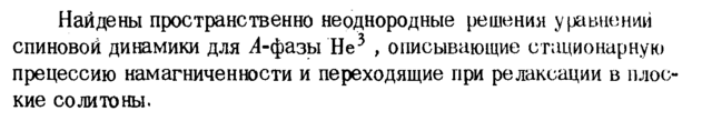 Найдены пространственно неоднородные решения уравнении спиновой динамики для i-фазы Не3 , описывающие стационарную прецессию намагниченности и переходящие при релаксации в плоские со ли тоны.