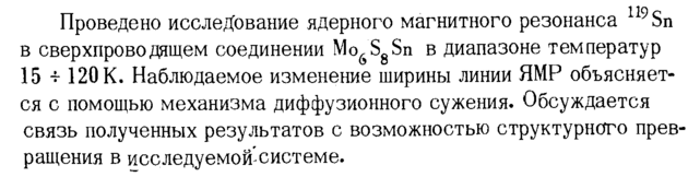 Температурная зависимость параметров ЯМР 119Sn в соединении Mo6S8Sn