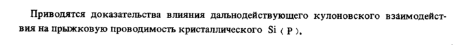 Приводятся доказательства влияния дальнодействующего кулоновского взаимодействия на прыжковую проводимость кристаллического Si < ρ >,