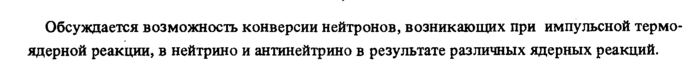 Обсуждается возможность конверсии нейтронов, возникающих при импульсной термоядерной реакции, в нейтрино и антинейтрино в результате различных ядерных реакций.