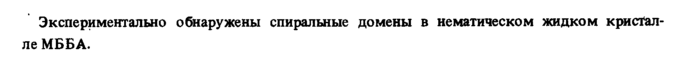 Экспериментально обнаружены спиральные домены в нематическом жидком кристалле МББА.