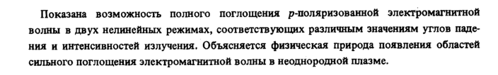 Показана возможность полного поглощения р-поляризованной электромагнитной волны в двух нелинейных режимах, соответствующих различным значениям углов падения и интенсивностей излучения. Объясняется физическая природа появления областей сильного поглощения электромагнитной волны в неоднородной плазме.