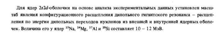 Для ядер 2«2^-оболочки на основе анализа экспериментальных данных установлен масштаб явления конфигурационного расщепления дипольного гигантского резонанса расщепления по энергии дипольных переходов нуклонов из внешней и внутренней ядерных оболочек. Величина его у ядер 23Na, 24Mg, 27А1 и 28Si составляет 10 12 МэВ.