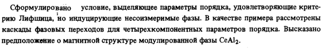 Сформулировано условие, выделяющее параметры порядка, удовлетворяющие критерию Лифшица, но индуцирующие несоизмеримые фазы. В качестве примера рассмотрены каскады фазовых переходов для четырехкомпонентных параметров порядка. Высказано предположение о магнитной структуре модулированной фазы СеА12.