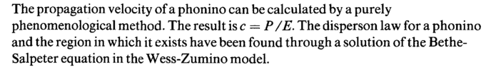 The propagation velocity of a phonino can be calculated by a purely phenomenological method. The result is с = Ρ /Е. The disperson law for a phonino and the region in which it exists have been found through a solution of the Bethe-Salpeter equation in the Wess-Zumino model.