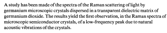 A study has been made of the spectra of the Raman scattering of light by germanium microscopic crystals dispersed in a transparent dielectric matrix of germanium dioxide. The results yield the first observation, in the Raman spectra of microscopic semiconductor crystals, of a low-frequency peak due to natural acoustic vibrations of the crystals.