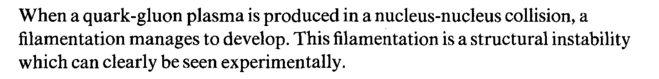 When a quark-gluon plasma is produced in a nucleus-nucleus collision, a filamentation manages to develop. This filamentation is a structural instability which can clearly be seen experimentally.