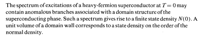 The spectrum of excitations of a heavy-fermion superconductor at Τ = 0 may contain anomalous branches associated with a domain structure of the superconducting phase. Such a spectrum gives rise to a finite state density N{Q). A unit volume of a domain wall corresponds to a state density on the order of the normal density.
