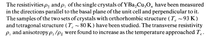 The resistivities p^ and pL of the single crystals of YBa2Cu3Ox have been measured in the directions parallel to the basal plane of the unit cell and perpendicular to it. The samples of the two sets of crystals with orthorhombic structure (Tc ~ 93 K) and tetragonal structure (Tc ~ 80 К) have been studied. The transverse resistivity pL and anisotropy pL /рц were found to increase as the temperature approached Tc.