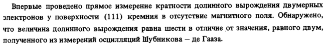 Впервые проведено прямое измерение кратности долинного вырождения двумерных электронов у поверхности (111) кремния в отсутствие магнитного поля. Обнаружено, что величина долинного вырождения равна шести в отличие от значения, равного двум, полученного из измерений осцилляций Шубникова де Гааза.