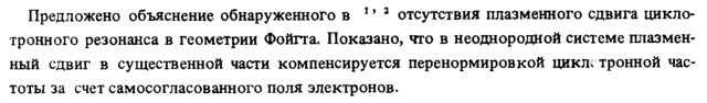 Предложено объяснение обнаруженного в 1' 3 отсутствия плазменного сдвига циклотронного резонанса в геометрии Фойгта. Показано, что в неоднородной системе плазменный сдвиг в существенной части компенсируется перенормировкой циклотронной частоты за счет самосогласованного поля электронов.