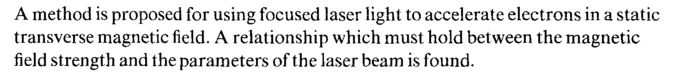 A method is proposed for using focused laser light to accelerate electrons in a static transverse magnetic field. A relationship which must hold between the magnetic field strength and the parameters of the laser beam is found.