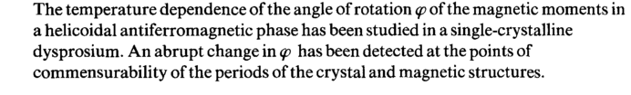 The temperature dependence of the angle of rotation φ of the magnetic moments in a helicoidal antiferromagnetic phase has been studied in a single-crystalline dysprosium. An abrupt change in φ has been detected at the points of commensurability of the periods of the crystal and magnetic structures.