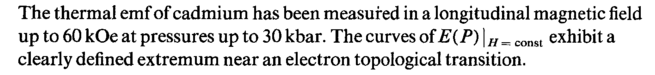 The thermal emf of cadmium has been measured in a longitudinal magnetic field up to 60 kOe at pressures up to 30 kbar. The curves of E(P) |H = const exhibit a clearly defined extremum near an electron topological transition.