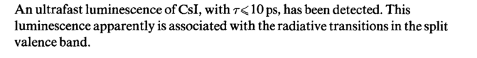 An ultrafast luminescence of Csl, with r< 10 ps, has been detected. This luminescence apparently is associated with the radiative transitions in the split valence band.