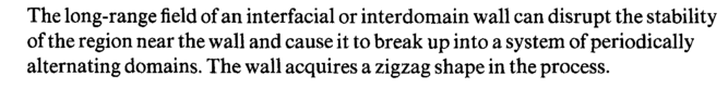 The long-range field of an interfacial or interdomain wall can disrupt the stability of the region near the wall and cause it to break up into a system of periodically alternating domains. The wall acquires a zigzag shape in the process.